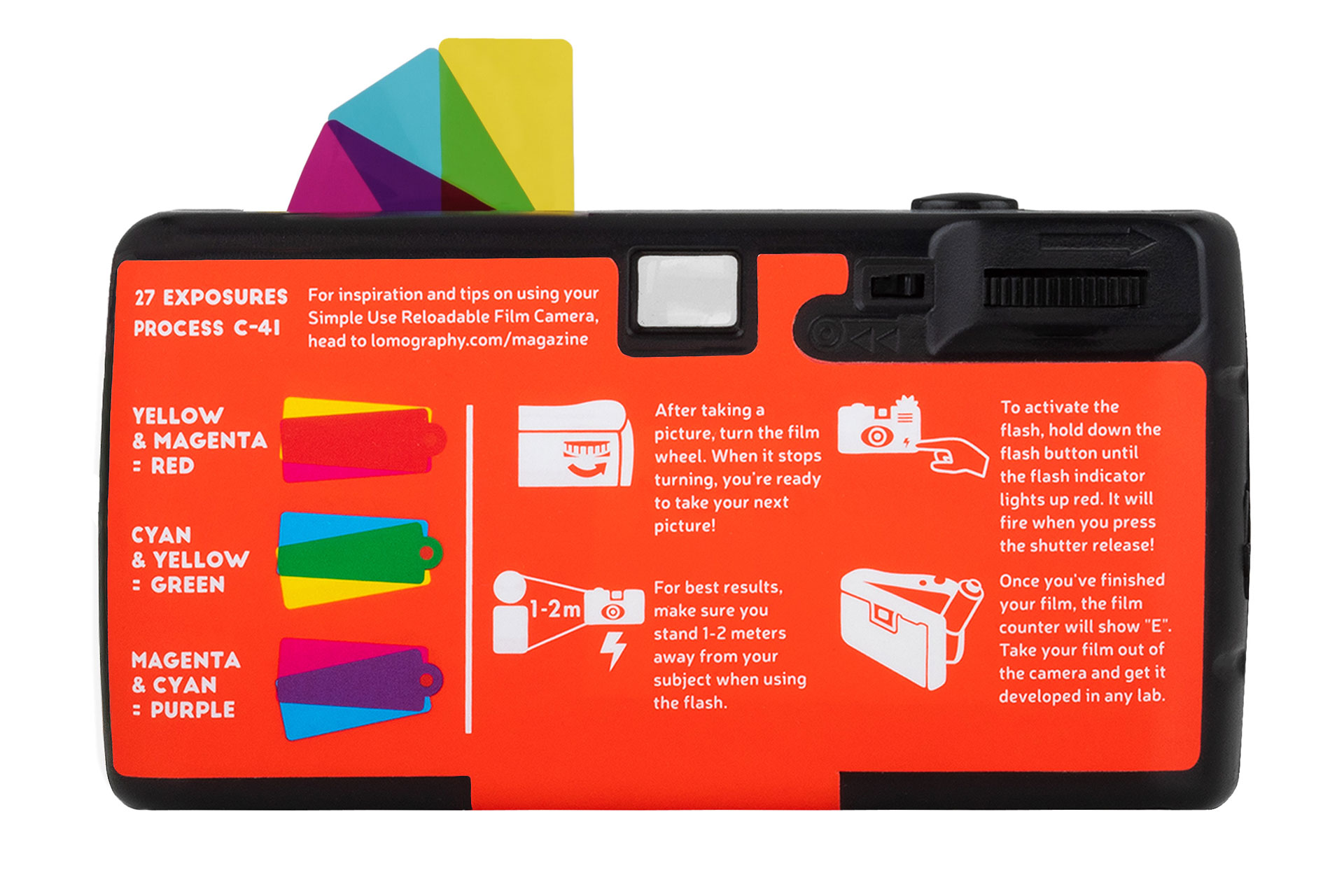 ロモグラフィー、肌が青に/空がオレンジになるレンズ付きフィルム