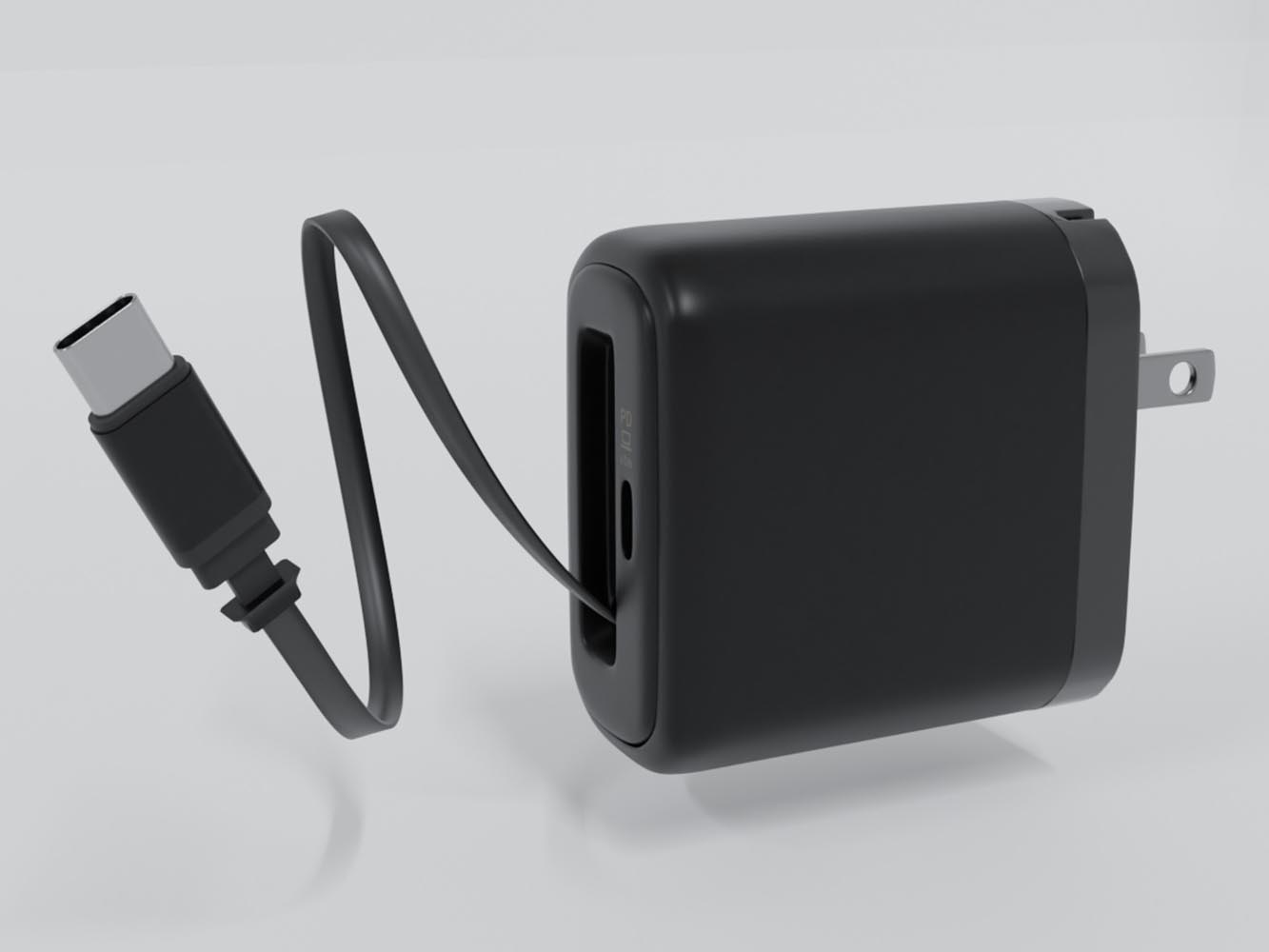 巻き取り式ケーブルを内蔵した65W出力のUSB充電器