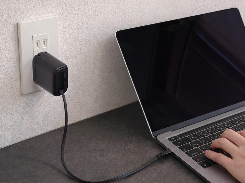 巻き取り式ケーブルを内蔵した65W出力のUSB充電器