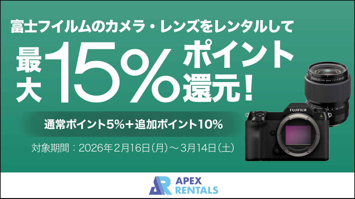 富士フイルム製品を借りるとポイントアップ。レンタルサービスの「APEX RENTALS」が5月に実施