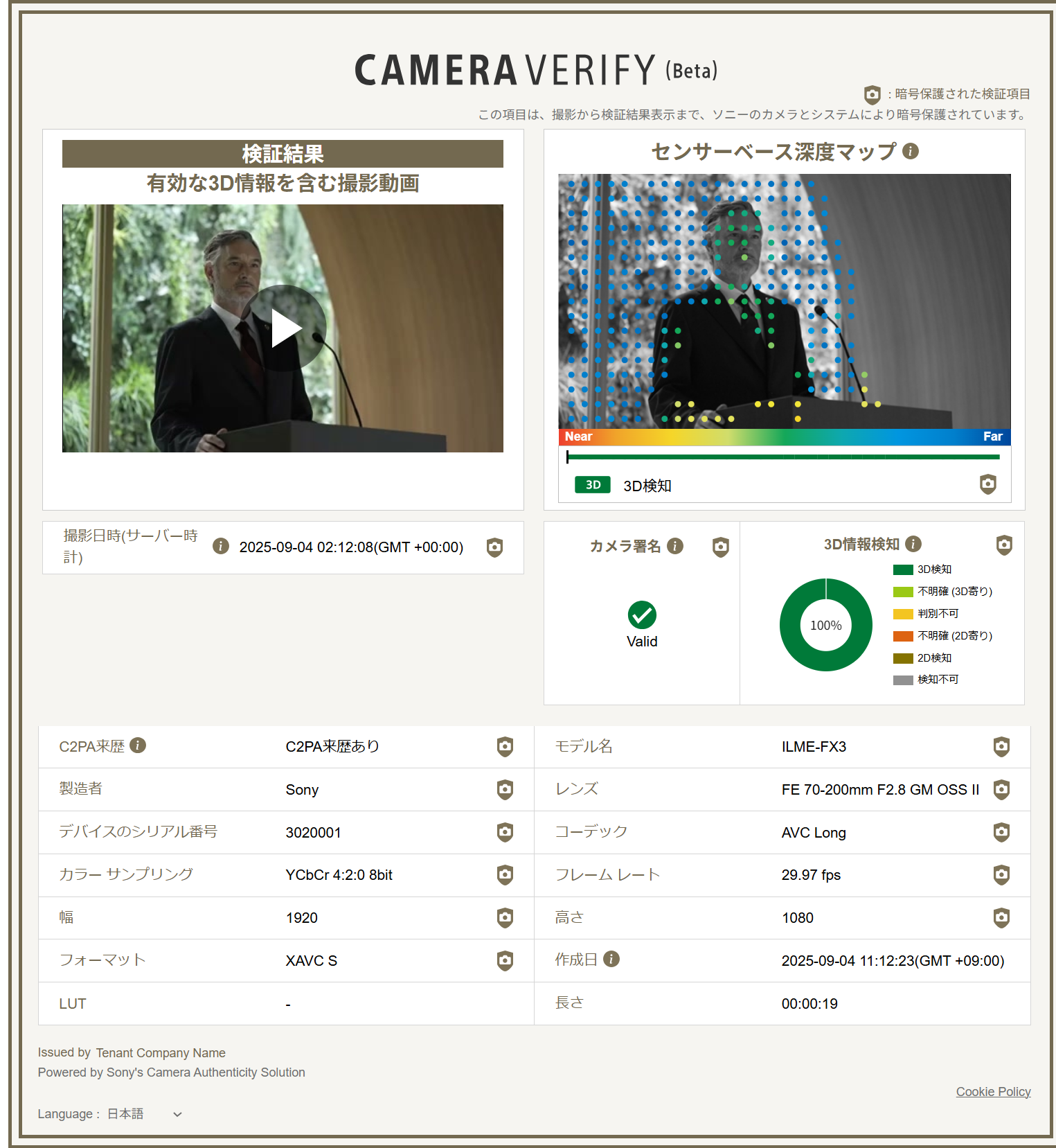 ソニーの真正性カメラソリューション、“動画への電子署名”に対応