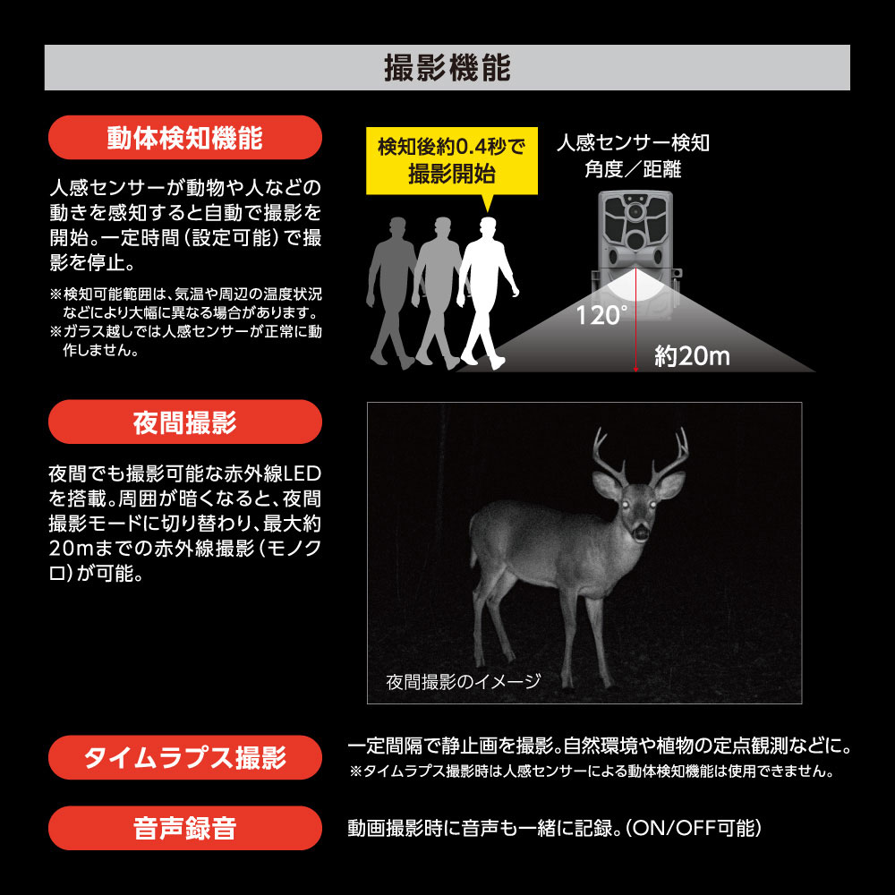人感センサーで自動撮影…乾電池駆動の屋外向けトレイルカメラ