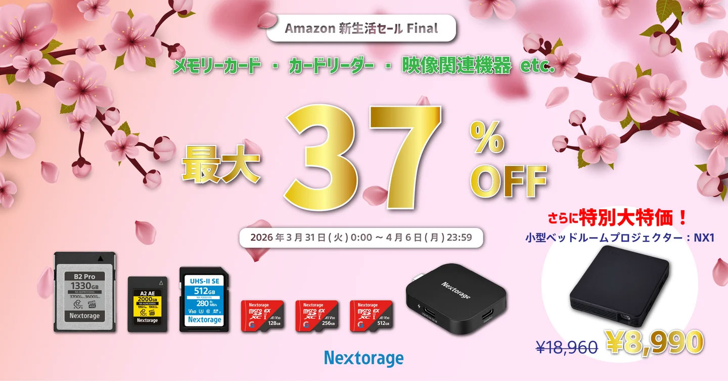 Nextorage、Amazon「新生活セールFinal」でメモリーカードなど最大37%OFFに