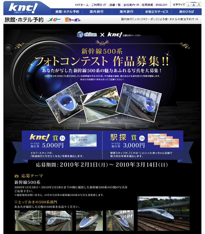 近畿日本ツーリストと駅探、「新幹線500系フォトコンテスト」を開催