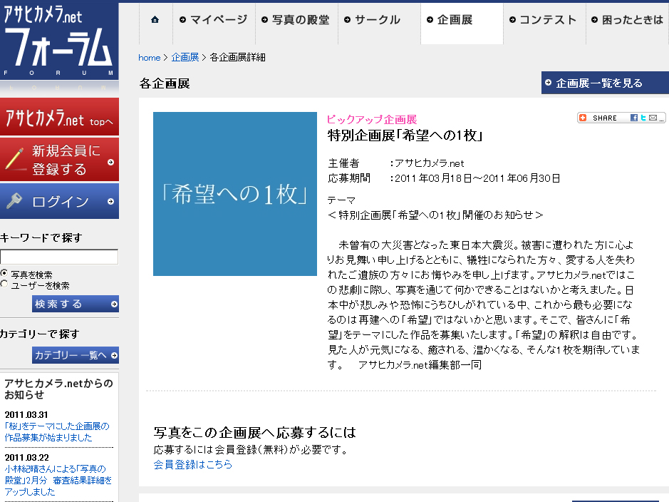 アサヒカメラ.net、東日本大震災に関連した投稿写真展「希望への1枚」