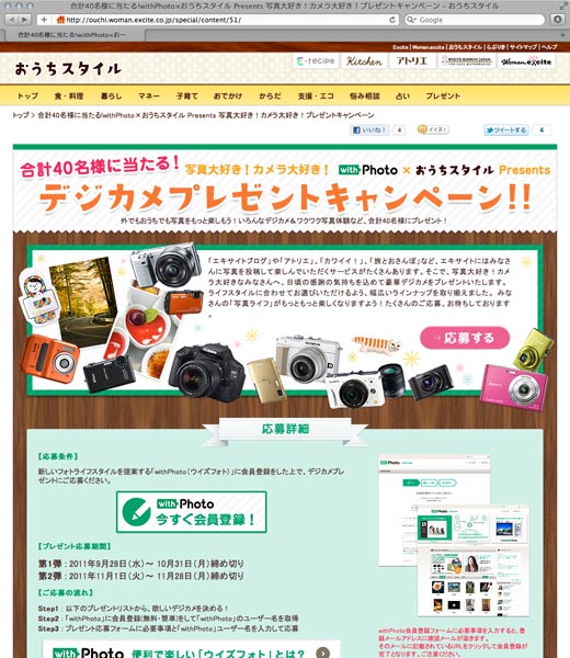 エキサイト、計40名にデジカメが当たる「おうちスタイル」×「withPhoto」キャンペーン