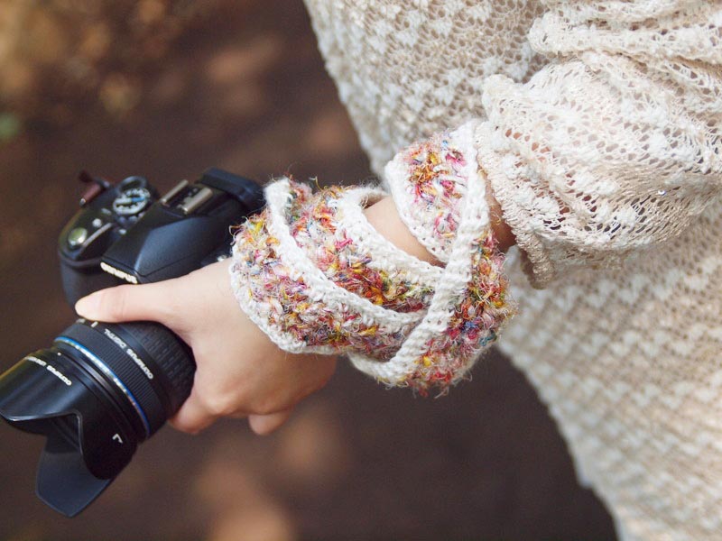フォトマルシェ、カラフルなシルクを編み込んだカメラストラップ