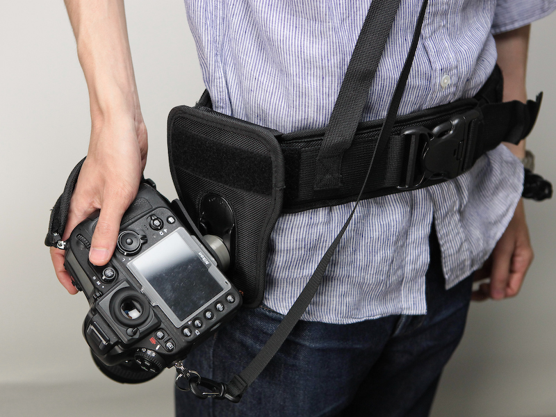 カメラをワンタッチで腰に装着できるホルダー