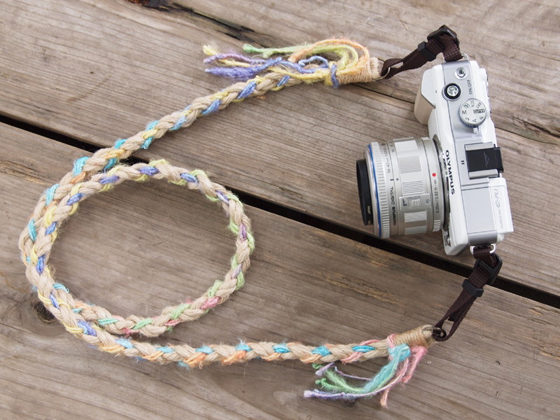 Photo M、ウッドビーズ使用の麻製ストラップ