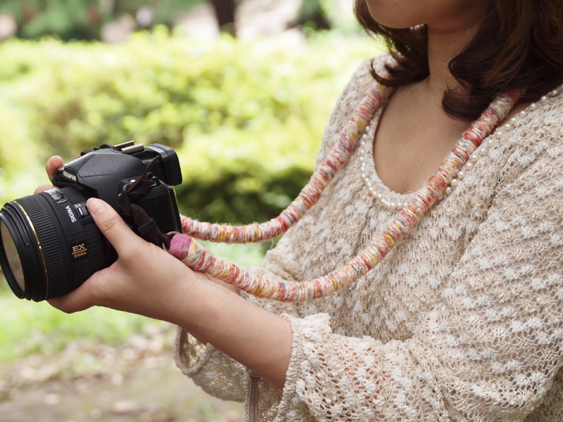 Photo M、ウッドビーズ使用の麻製ストラップ