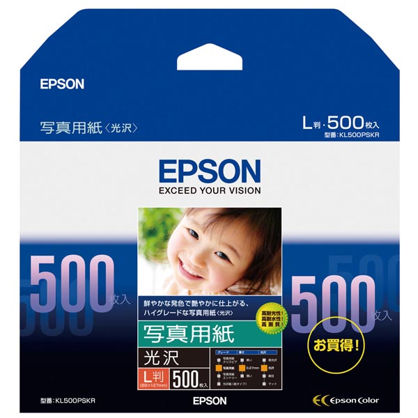 エプソン、「写真用紙<光沢>」のLサイズに500枚入りパッケージ