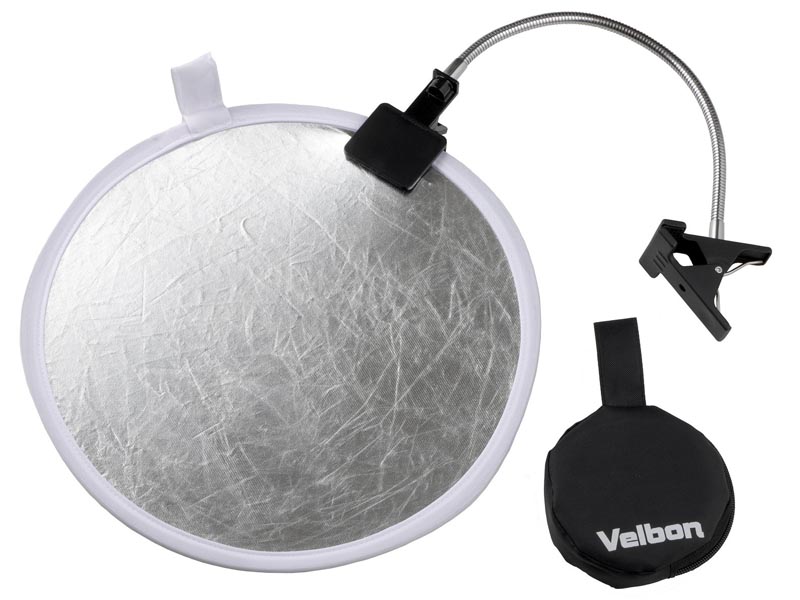 ベルボン、小型丸レフとフレキシブルアームの「レフ板&クリップセットII」