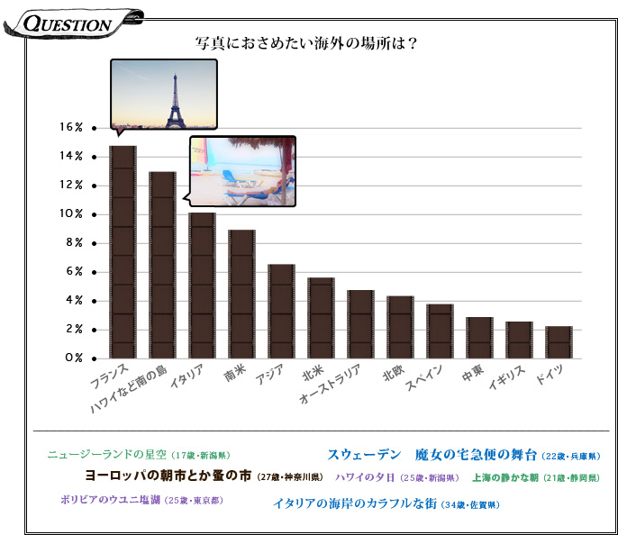 写真の被写体で多いのは?男性「自然」、女性「家族」