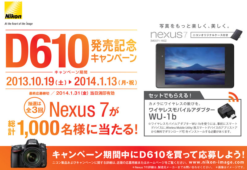 ニコン「D610」の購入でNexus 7が当たるキャンペーン