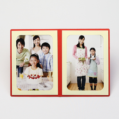 カメラアイコンをあしらった、カラフルな写真台紙