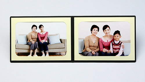 カメラアイコンをあしらった、カラフルな写真台紙