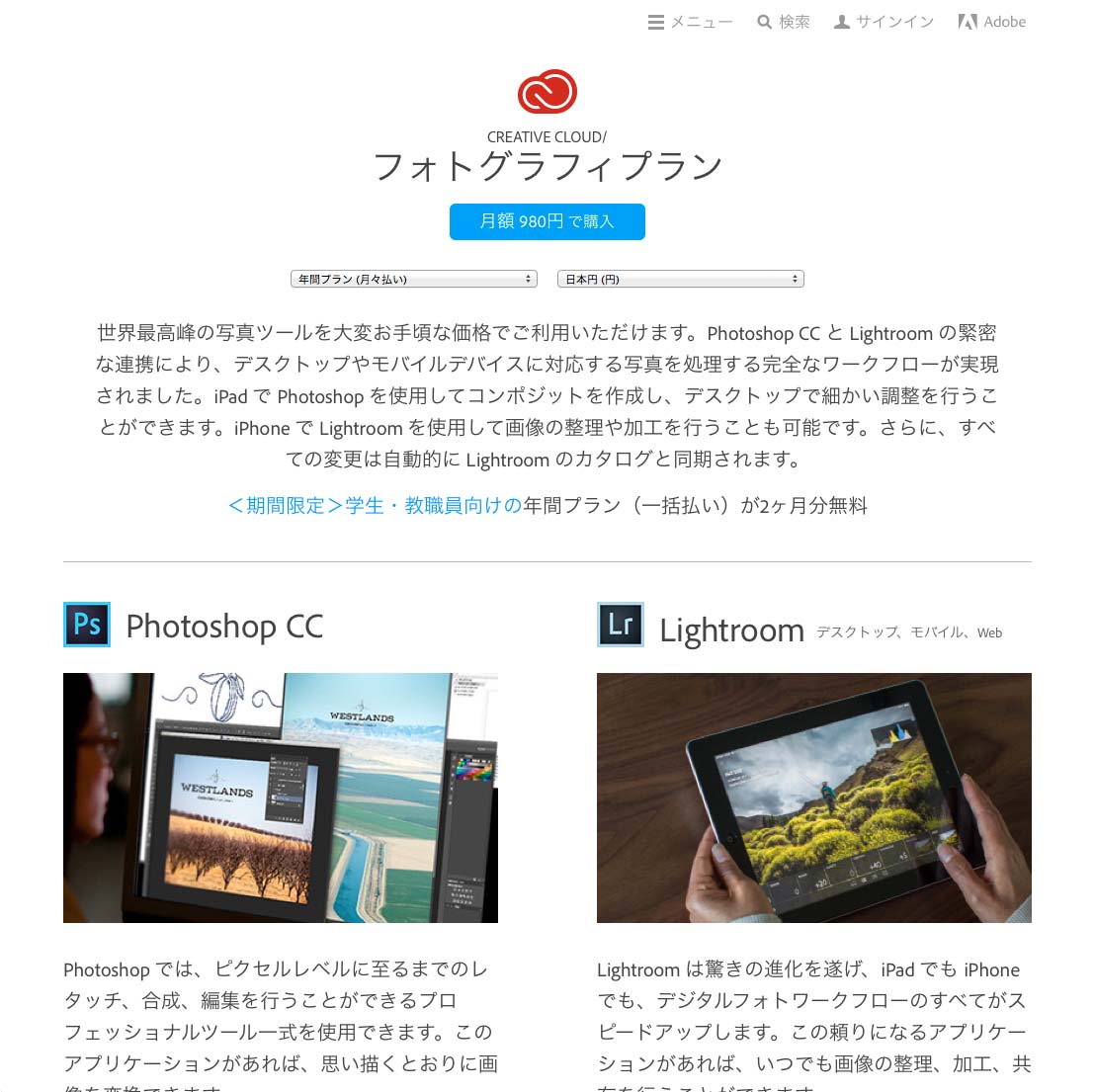 アドビ、「Creative Cloudフォトグラフィプラン」のダウンロードカードを販売