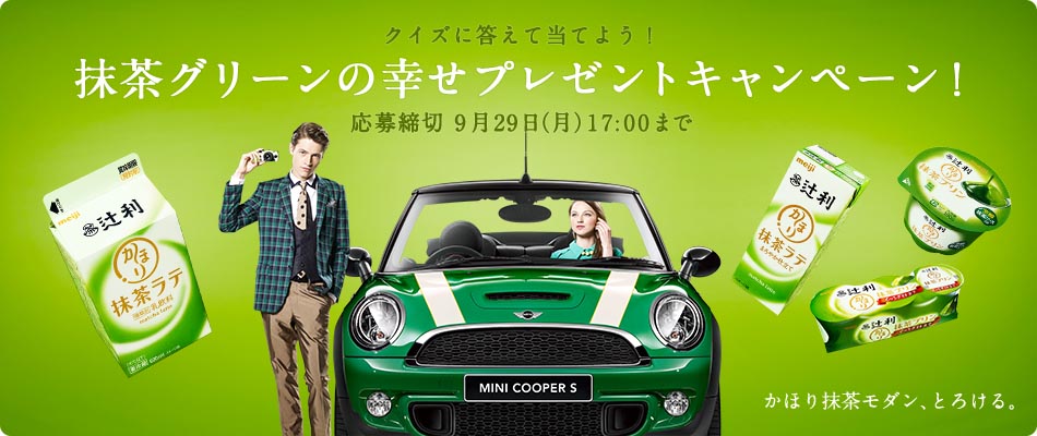グリーンのデジカメやクルマが当たる!辻利 かほり抹茶の「幸せプレゼントキャンペーン」