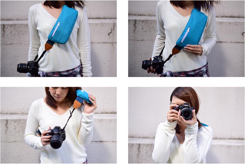 斜め掛けストラップにバッグがくっついた「INSTRAP」