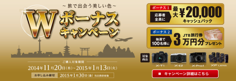富士フイルム、最大2万円のキャッシュバックキャンペーン