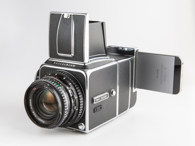 フィルムカメラにiPhoneを装着する「デジスワップ」、ハッセルブラッド用のクラファンが開始