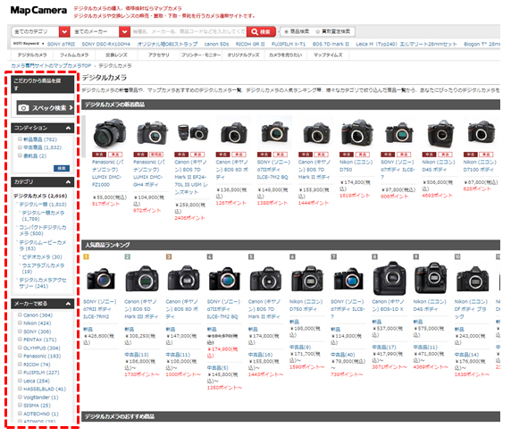 Map Camera、商品購入ページの検索機能を強化