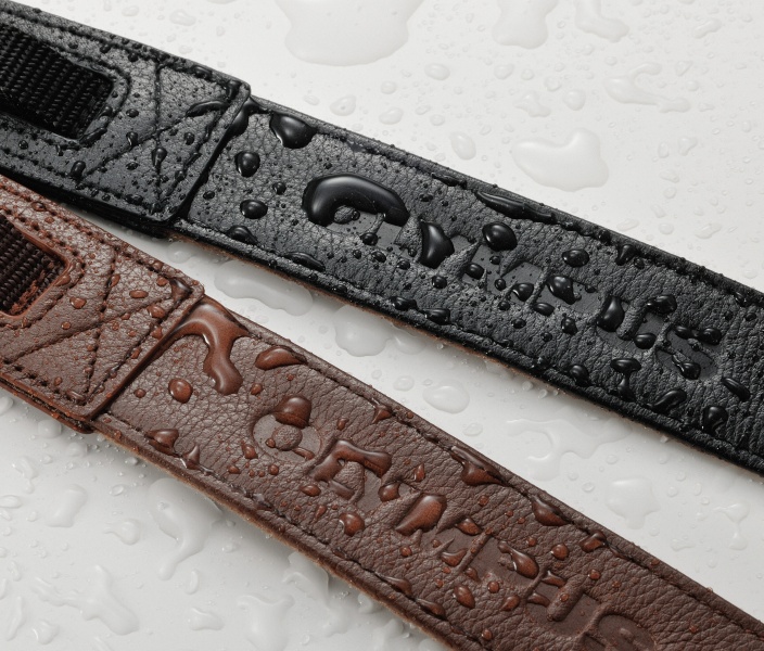 オリンパス、撥水加工の本革カメラストラップ