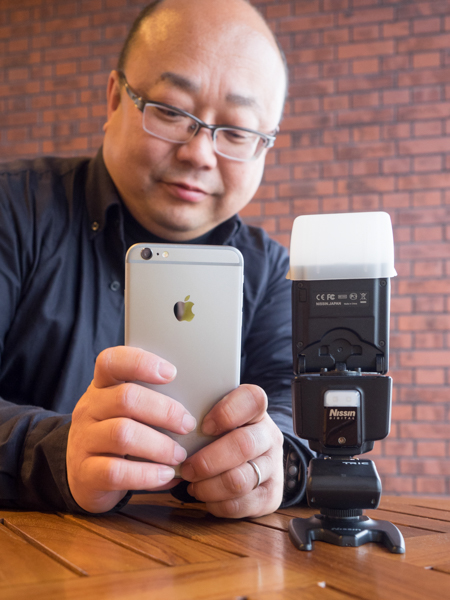 iPhoneで撮影するとクリップオンストロボが発光