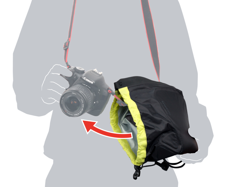 KANI、広角〜超望遠ズームまで覆えるレインカバー。手持ち撮影も可能